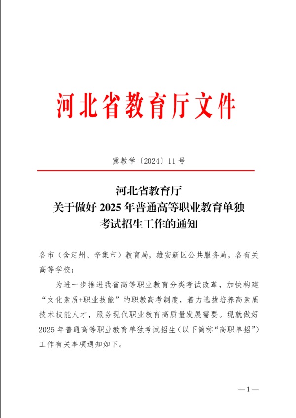 河北省教育廳關(guān)于做好2025年普通高等職業(yè)教育單獨(dú)考試招生工作的通知