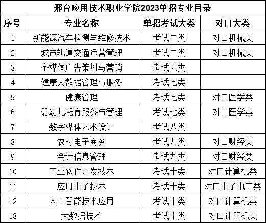 學(xué)校名稱:邢臺應(yīng)用技術(shù)職業(yè)學(xué)院 學(xué)校代碼:14742 辦學(xué)層次:???1、招生計(jì)劃 待單招報(bào)名結(jié)束后,根據(jù)報(bào)名情況擬定分專業(yè)招生計(jì)劃,詳見牽頭院校公布
