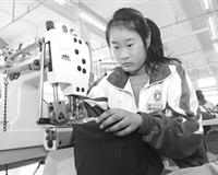 山東淄川校企共融構(gòu)建現(xiàn)代職教模式,學(xué)生出校門(mén)進(jìn)廠門(mén)。圖為淄川區(qū)職教中心學(xué)生在實(shí)訓(xùn)基地加工服裝。CFP .. |
