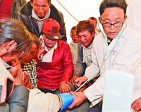 4月26日,西藏吉隆縣衛(wèi)生局鄉(xiāng)鎮(zhèn)衛(wèi)生院醫(yī)生在為薩勒鄉(xiāng)薩勒村村民治療。新華社記者 劉東君攝4月26日,武警.. |